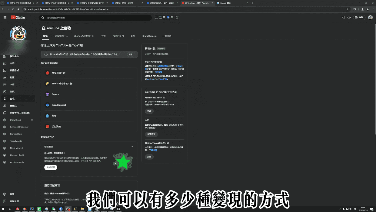 梁老师会帮你解析2025年油管平台的现状与机会,让你明确入局的必要性。然后重点来了他会详细讲解广告分成、高收益赛道等获利途径,手把手教你加入YPP合作伙伴计划,让你轻松实现盈利。