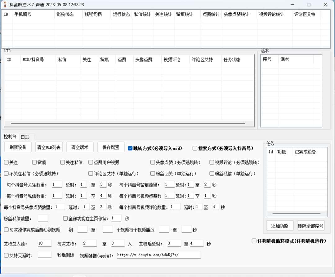 最新抖音群控引流软件,支持多个安卓设备群控引流操作。