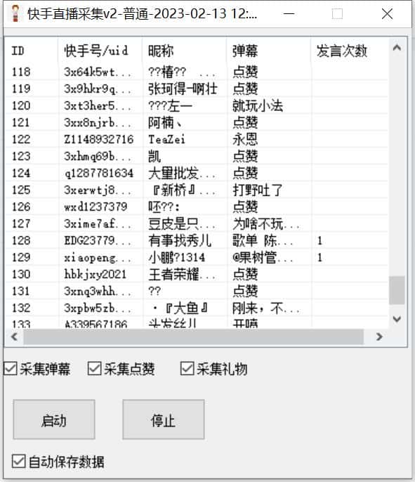 一款针对KS直播间进行采集发言,弹幕,DZ,礼物,互动等内容的软件