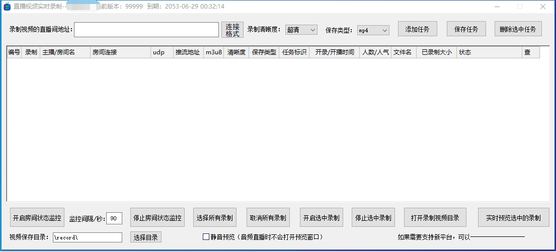 这是对直播平台的直播视频进行实时录制的软件,可以监控直播间是否开播,开播后可自动进行录制,自动去平台水印,且可以选择保证的清晰度(如蓝光、超清等)和保存的视频类型(如mp4flvts等)。目前支持平台:抖音、yy、快手、斗鱼、花椒、虎牙、b站、cc(163)、西瓜、企鹅电竞、腾讯now等平台