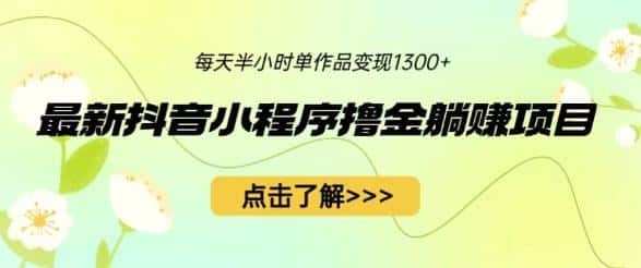 最新抖音小程序撸金躺赚项目,一部手机每天半小时,单个作品变现1300+【揭秘】