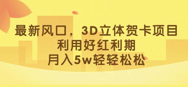 最新风口,3D立体贺卡项目,利用好红利期,月入5w轻轻松松【揭秘】