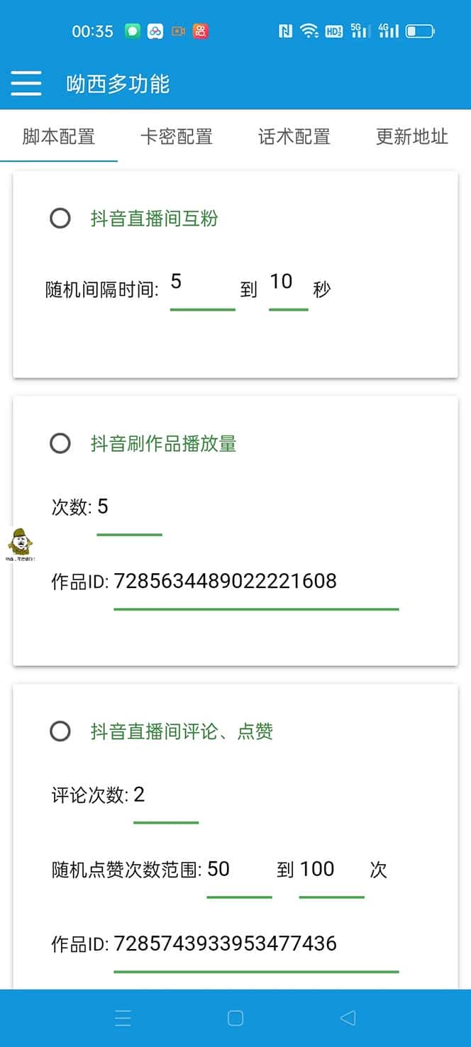 (7495期)【引流必备】最新斗音多功能互粉引流脚本,解放双手自动引流【引流脚本+…云创网站长2年前发布关注私信090(7495期)【引流必备】最新斗音多功能互粉引流脚本,解放双手自动引流【引流脚本+…此内容为付费资源,请付费后查看F币9.9高级代理免费顶级代理免费立即购买您当前未登录!建议登陆后购买,可保存购买订单付费资源 脚本功能: 功能一:互粉直播间互粉,稳定一天150+关注 功能二:刷作品播放 功能三:直播间随机话术评论,随机点赞 功能四:粉丝列表留痕,支持点赞头像 功能五:直播间排行榜留痕,支持点赞头像 设备需求: 安卓手机8.1及以上系统 本脚本卡密需要另外购买,几块钱一个,介意请移步到不需要卡密的项目 © 版权声明 版权声明 1 本网站名称:优优云创网 2 本站永久网址:https://ip.zn0554.com/ 3 本网站的文章部分内容可能来源于网络,仅供大家学习与参考,如有侵权,请联系站长 进行删除处理。 4 本站一切资源不代表本站立场,并不代表本站赞同其观点和对其真实性负责。 5 互联网转载资源会有一些其他联系方式,请大家不要盲目相信,被骗本站概不负责! 6 本网站部分内容只做项目揭秘,无法一对一教学指导,每篇文章内都含项目全套的教程讲解,请仔细阅读。 7 本站分享的所有平台仅供展示,本站不对平台真实性负责,站长建议大家自己根据项目关键词自己选择平台。 8 因文章发布时间和您阅读文章时间存在时间差,有些项目红利期可能已经过了,能不能赚钱需要自己判断,本网站仅做资源分享,不做任何收益保障。 9 本站资源大多存储在云盘,如发现链接失效,请联系我们我们会第一时间更新。 THE END中创网资源 喜欢就支持一下吧点赞0赞赏 分享QQ空间微博QQ好友海报分享复制链接收藏