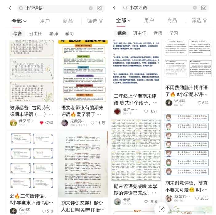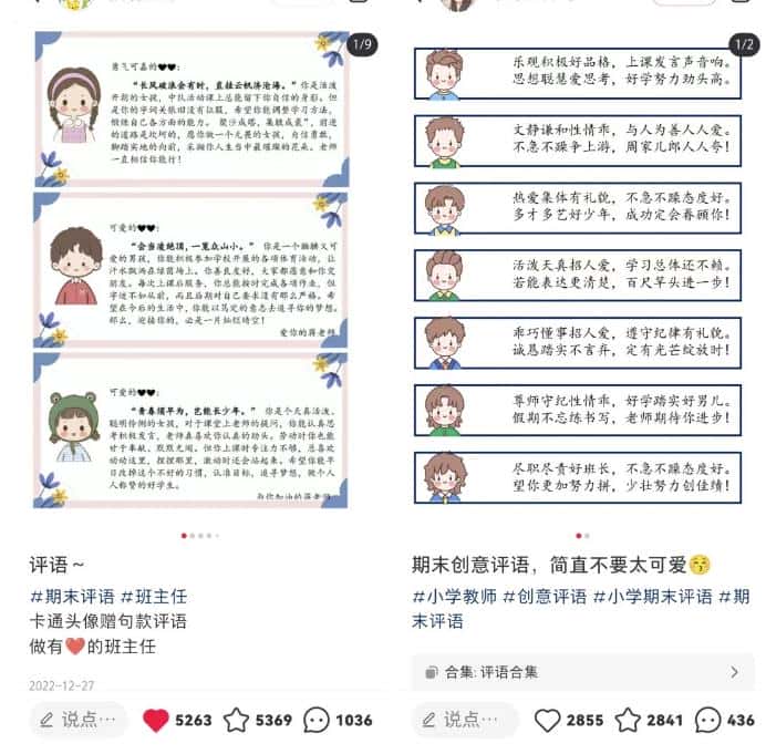 也可以通过小红书搜索一下学生评语,发布的笔记流量都很不错,基本都是上千点赞,最少的也有几百,作品操作很简单,评论区都是求分享。
