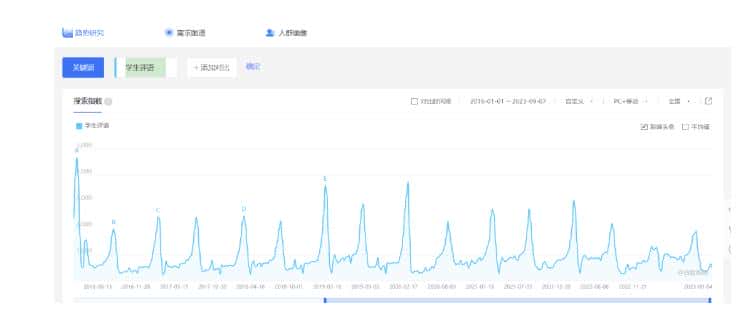 这个项目一年会有两次爆发期,快放暑假、寒假的时候,去百度指数搜索一下关键词可以看到每年上升期就算在寒暑假的时间段,只要寒暑假快到之前,把评语提前准备好去卖就行了。