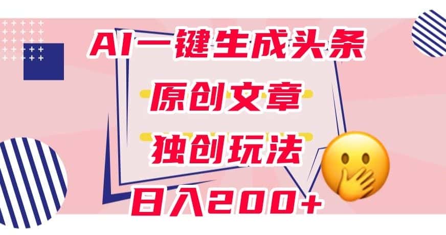 利用AI一键生成头条原创文章,0粉丝即可变现,稳定日入200+【揭秘】