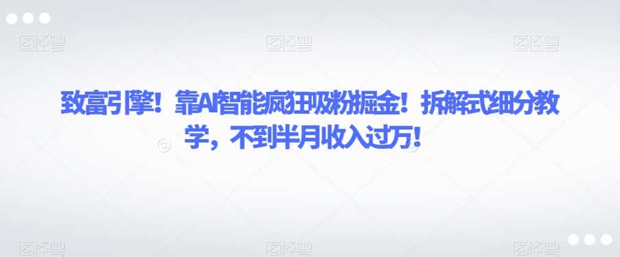 致富引擎!靠AI智能疯狂吸粉掘金!拆解式细分教学,不到半月收入过万【揭秘】