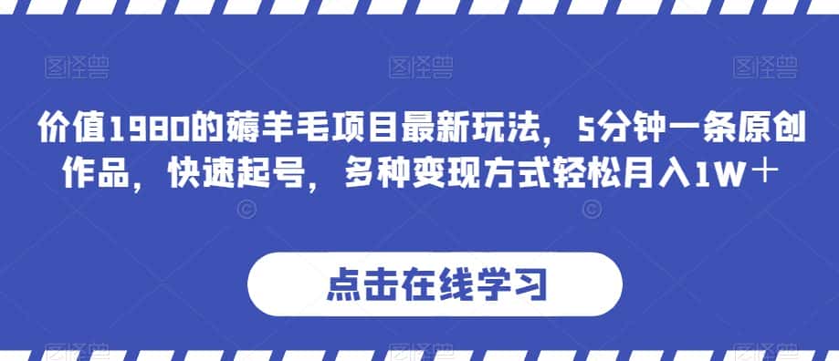 价值1980的薅羊毛项目最新玩法,5分钟一条原创作品,快速起号,多种变现方式轻松月入1W+【揭秘】