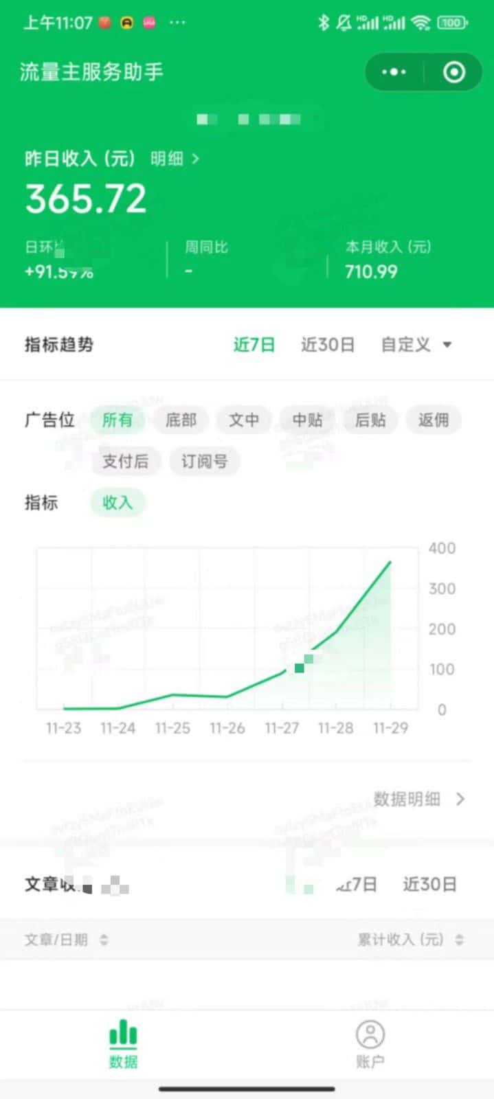 什么是公众号分成计划?用户注册订阅号,并开通流量主我每天提供文章,你只需要每天按照要求发布即可每天工作时间10-20分钟左右先给大家说清楚,公众号流量主项目,不是一个必赚钱的项目,可能一个月几千,一个月几万,也可能一个月0,大部分账号,一个月收益在几千块钱。如果你追求很稳,害怕自己一直是0收入,那么这个项目不适合你。合作分成:税后五五分,实际上,我们只能拿到40%甚至更低。因为扣税的话,一般在20%左右,扣的税明年在个税APP上可以退到你自己的银行卡。本次计划招募达人,公众号赛道目前是职场。