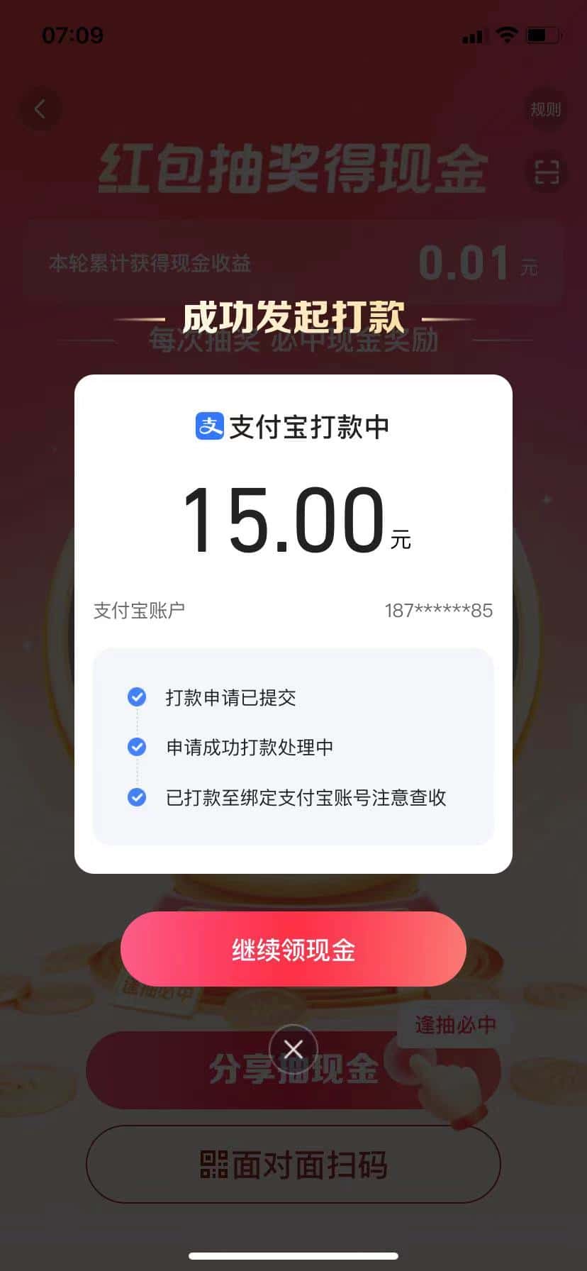 抖音推出的活动非常简单而且靠谱!提现秒到支付宝,升级抖音最新版本,通过邀请进入活动入口,时间12小时一轮单号3-8次左右保底3*15=45利润以上,纯捡钱撸金活动正常秒到,也可能晚两小时到,打款失败则发放钱包余额再次提现即可