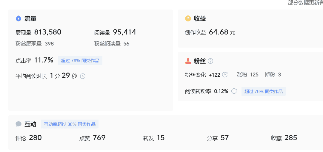 注意:这个是当天爆了一篇,9W的收益是64.68 加上其他小爆文,凑起来是90.49