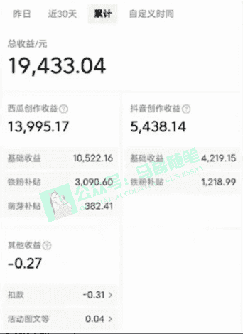 中视频计划一直都是一个赚钱又稳定的地方,只要你能吸引大量观众,就能获得丰厚的收益;我的这套玩法恰好同时适合今日头条和视频号,只需要制作一条原创,一键同步发布在多个平台上,同时赚取多份收益,且可以实现小号授权多账号矩阵,每天1000+的收益是保守说法,看看我的收益就知道了。