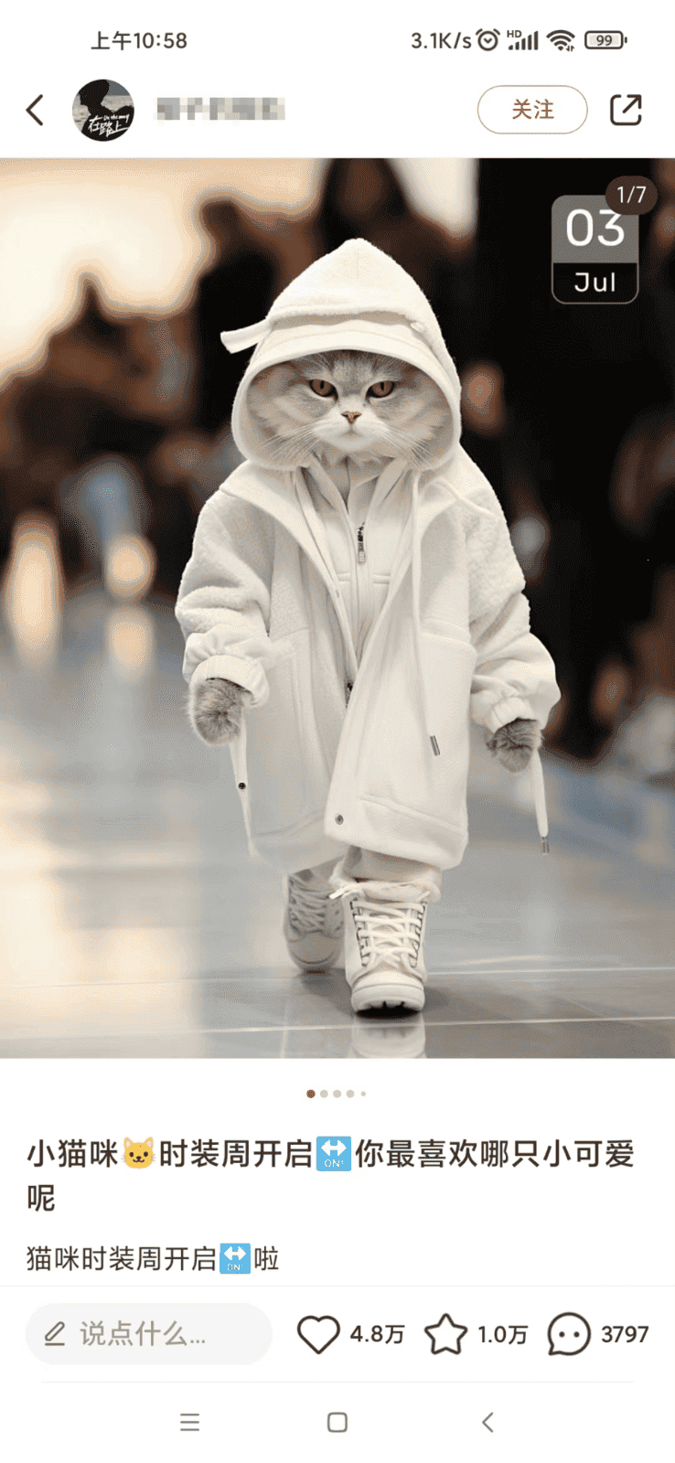 Animal秀,小红书上的明星项目,每次发布都轻松收获数万点赞!这不仅仅是猫咪走秀,更是一场独特的时尚盛宴,一只猫穿着时尚衣物,优雅地走上T台。这一别开生面的表演,让人眼前一亮,仿佛穿越到一个梦幻的时尚世界。