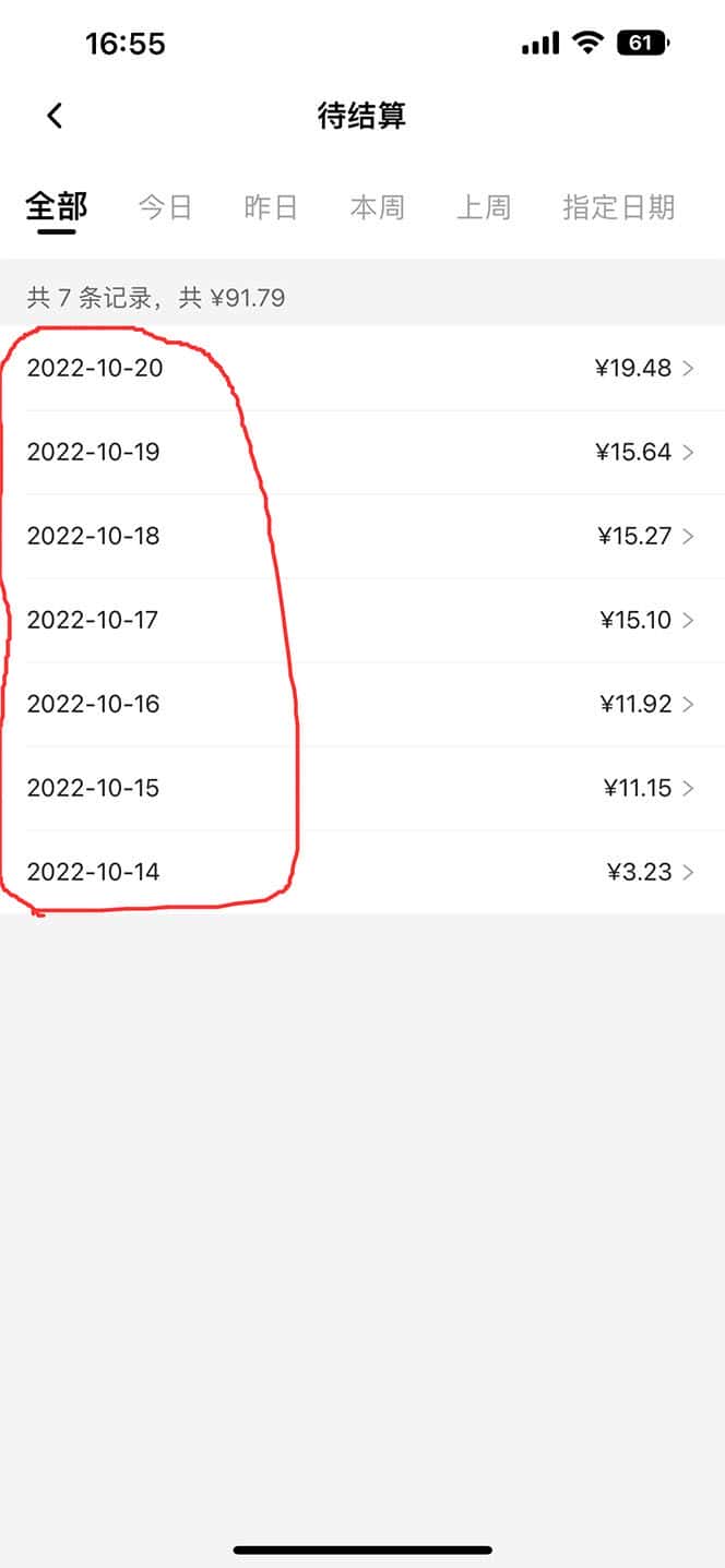 二、关于提现:比如说今天截止凌晨12点你的某个帐号刷完了15元,也就是加起来共1500流量,7天一个结算周期,如果每天都挂机刷流量,7天后的每一天都可以提现15+