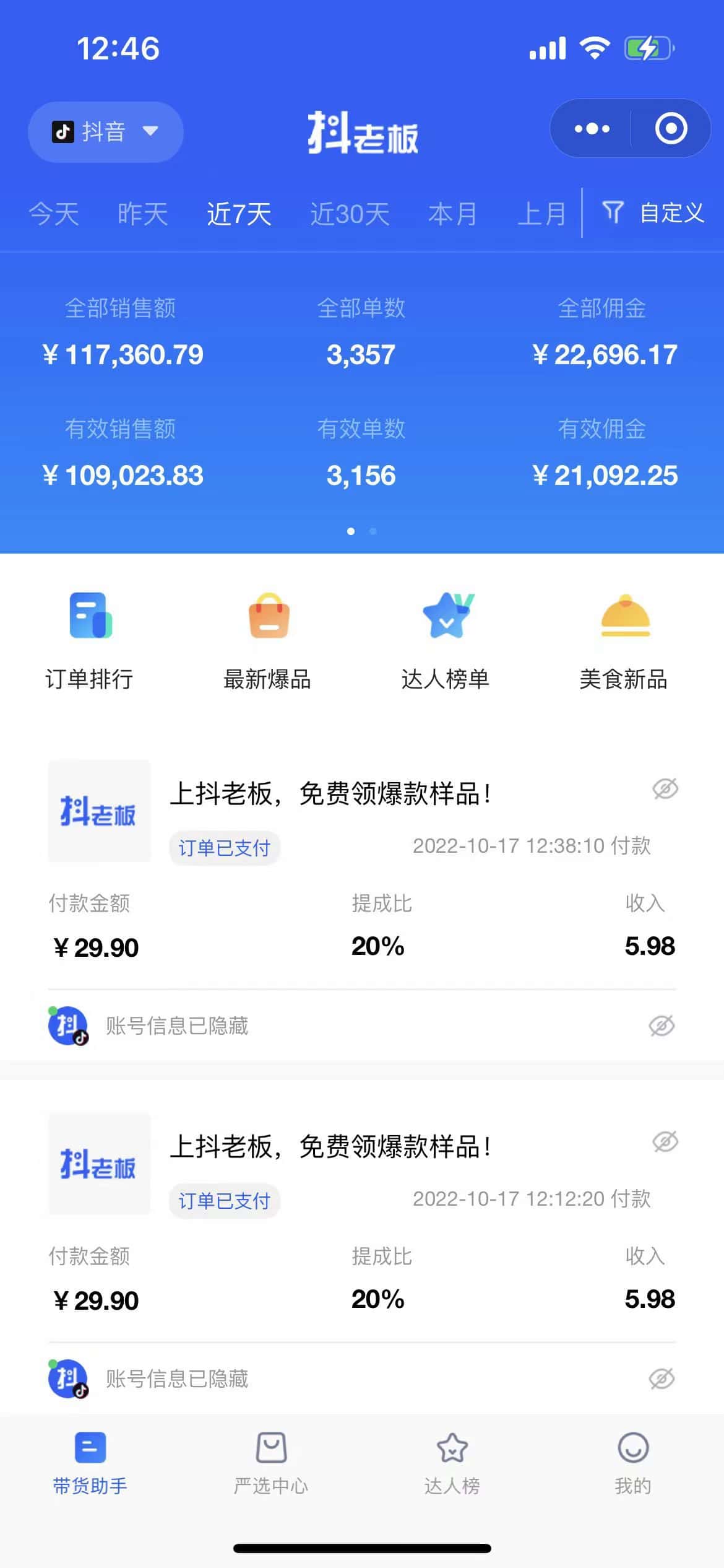 按照教程内的方法来做,坚持发视频,肯定是能出单的!然后爆个视频出来,一天四位数是一点都不夸张的。(带个最近七天的收益图)