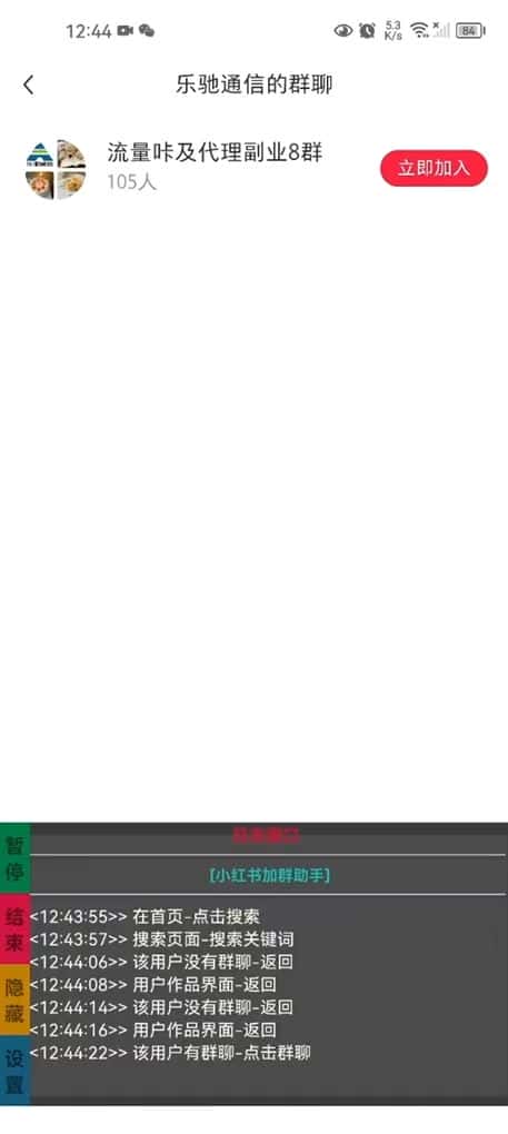 功能包含小红书自动按照关键词进群,找到精准引流群,引流到自己的小红书群里,效果极佳。