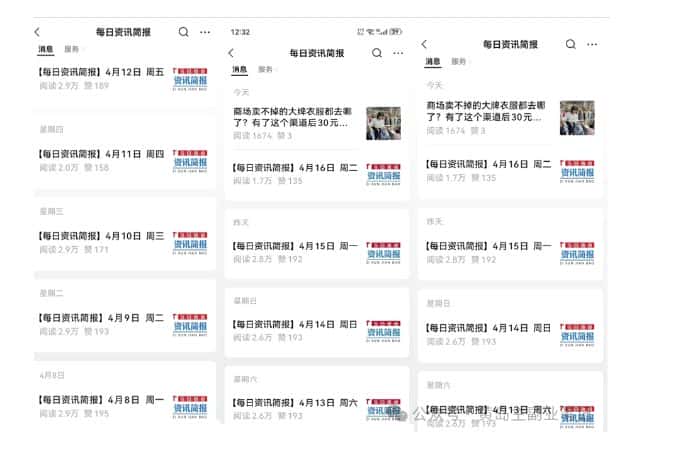 项目原理是通过整合新闻信息发布到B站、抖音、公众号、视频号等平台,吸引用户关注,当粉丝数达到一定的数量之后,通过多种方式变现,公众号案例内容形式就是简单的图文,阅读量都在上千,每天发至少有一篇好几千阅读量,再看每日资讯简报公众号,每天阅读量都过2万,而且读者非常稳定。