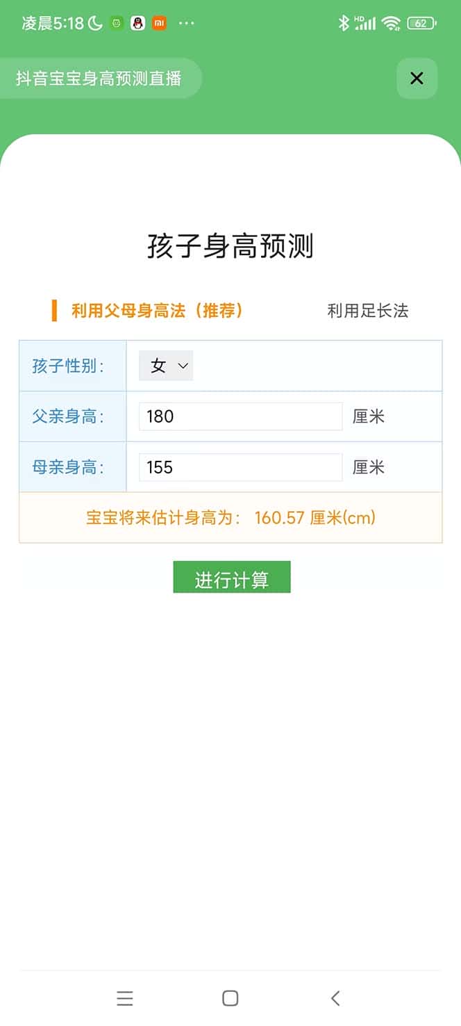 对于宝宝未来身高,是每一位做新手父母期盼的问题,这款软件可以直播间给新手宝妈宝爸们预测宝宝未来身高的一款工具,直播时可以让用户来刷礼物,然后提供查询,懂的都懂,收割神器。