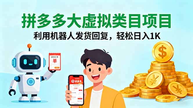 哎呦,兄弟们,听说了没?拼多多上有个大虚拟类目项目,不用发货,不用自己回复,机器人就能搞定,每天轻轻松松赚个一千块!这事儿听起来是不是挺吸引人的?那咱们就好好唠唠这个项目。